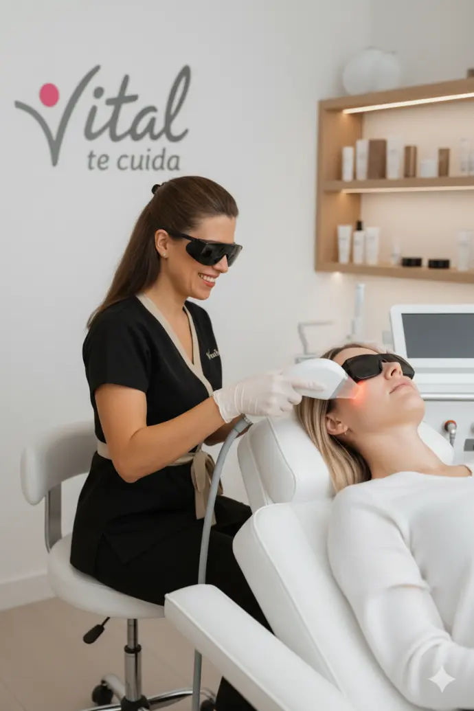 Terapia a base de luz de alta intensidad para el tratamiento de rojeces acné signos del envejecimiento etcétera estimula la producción de colágeno o la eliminación de células no deseadas proporcionando una mejora global de la piel.